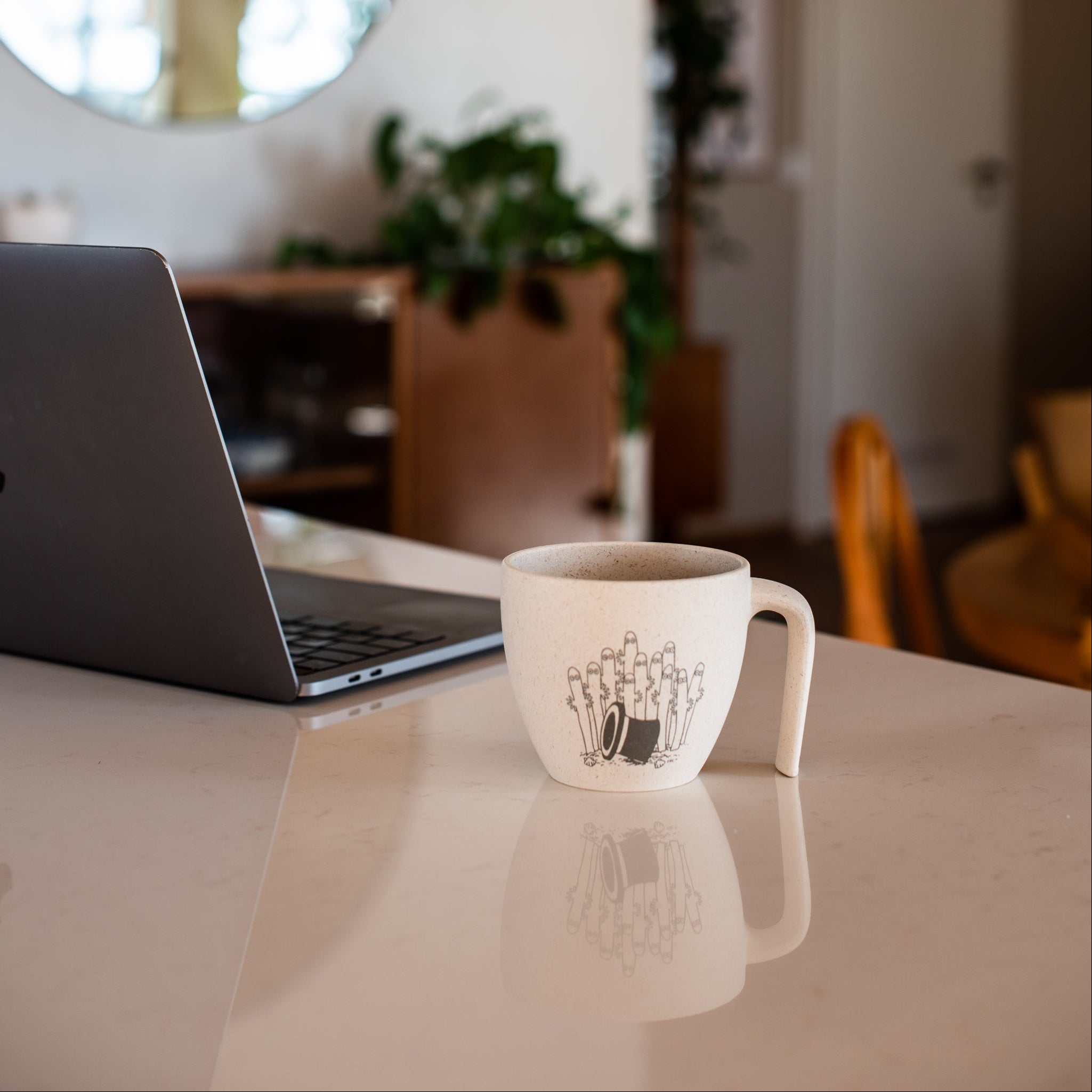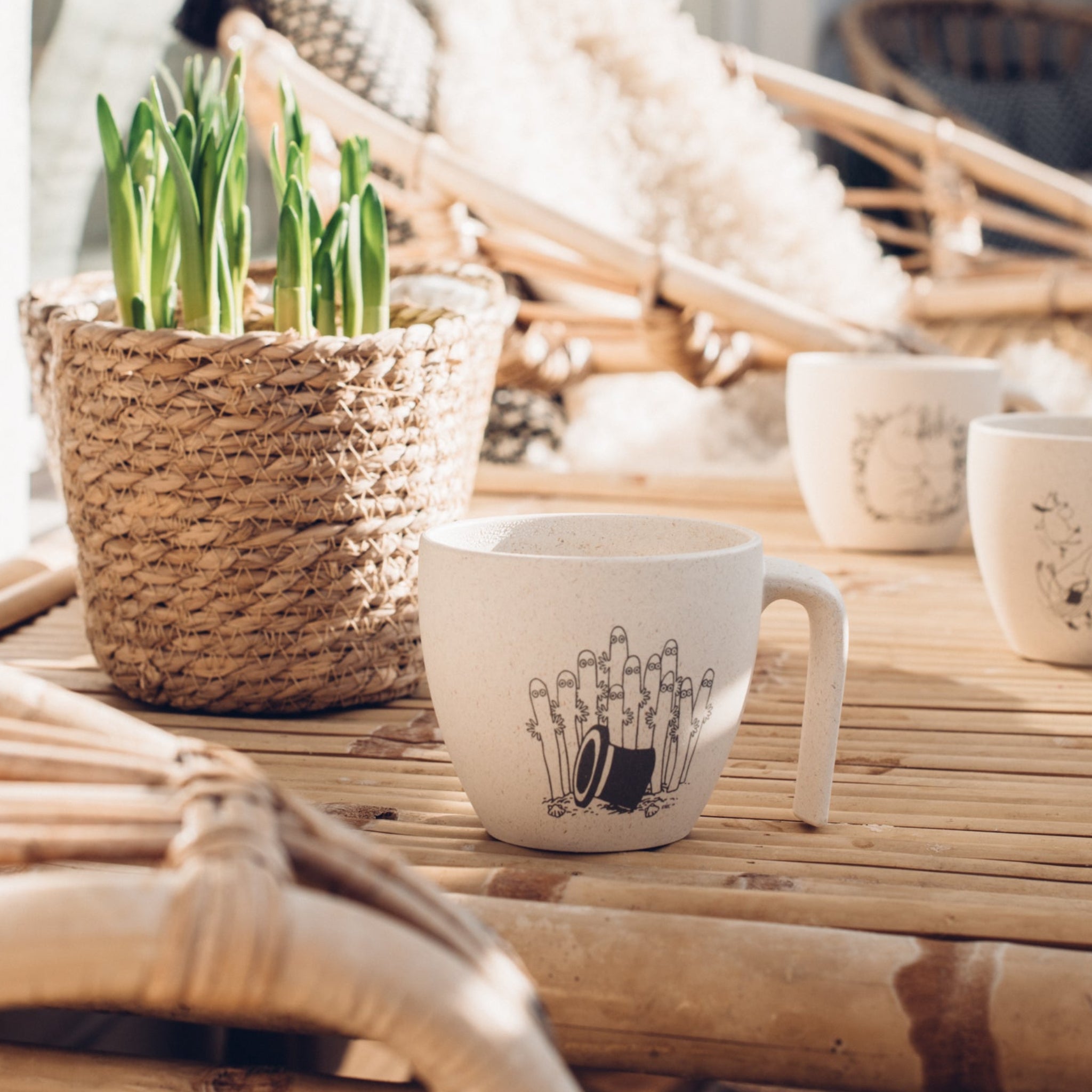 Muki on valmistettu Suomessa 94 % kasvipohjaisesta biomateriaalista. Materiaali hyödyntää sokeri- ja metsäteollisuuden sivuvirtoja ja tarjoaa kestävän sekä turvallisen vaihtoehdon perinteisille muovimukeille. Kevyt mutta kestävä muki yhdistää käytännöllisyyden, ekologisuuden ja pohjoismaisen designin.