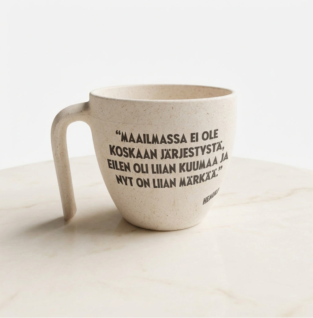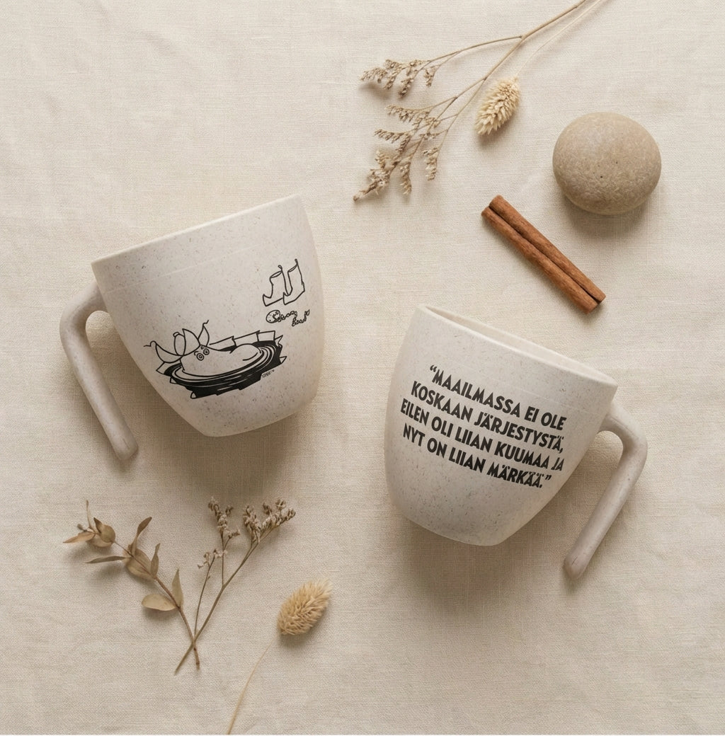 Made in Finland from 94% bio-based biocomposite, the cup is a durable and environmentally responsible alternative to traditional plastic mugs. The material utilizes side streams from the sugar and forest industries, combining sustainable innovation with practical Nordic design.